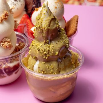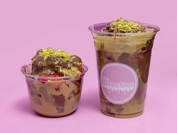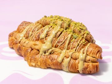 Sweeties buttery croissant layered with Sweeties Pistachio Cookie Dough. Dressed with Pistachio sauce, Pistachio Cookie Dough & Pistachio Nuts