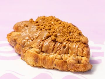 Sweeties buttery croissant layered with Sweeties Biscoff Cookie Dough. Dressed with Biscoff sauce, Biscoff Cookie Dough & Biscoff crumbs